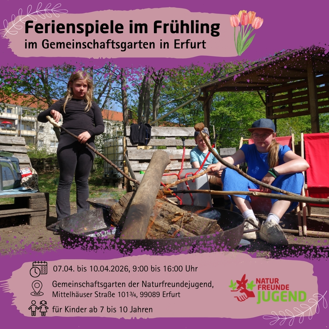 Anmeldung und weitere Infos unter info@naturfreundejugend-thueringen.de oder telefonisch unter 0361/5623356