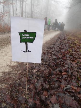 Die 10km lange Wanderung führte durch einen zähen Nebel, über befestigte und unbefestigte Wege in spannende Diskussionen und konträre Positionen. Das Waldstück auf dem Possen soll nach Beschlüssen aufgeteilt werden. 1000 Hektar sollen in Zukunft geschützt und zu einem wilden Ort werden, 500 Hektar sollen weiter forstwirtschaftlich genutzt werden. Die Diskussion um Naturschutz, wirtschaftlichen Belangen in der Region, Rückegassen und co. halten jedoch an. Während der Veranstaltung Politik im Grünen kamen alle zu Wort. Die Bürgerinitiativen, die sich für und gegen eine „Waldwildnis auf dem Possen“ engagieren, fanden Raum für Austausch und Vorstellung ihrer Argumente. An vier Stationen regte Ulf mit fundierten Fragen die Besucher*innen dazu an, Gespräche weiterzuführen und Fragen zu formulieren, die Babett Pfefferlein gerne beantwortete. Das abschließende, gemütliche Beisammensitzen in der Gaststube versprach wieder warme Hände und einen gemütlichen Ausklang.