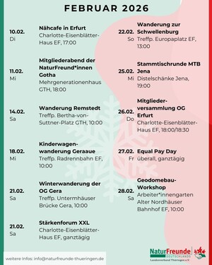 Seid mit uns NaturFreund*innen Thüringen auch im Februar unterwegs in Sachen Demokratie, Nachhaltigkeit, Freizeit und...