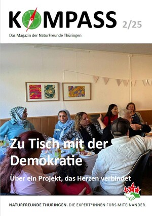 Seit August 2011 erscheint viermal im Jahr unser kompass Magazin. Auf elf Seiten berichten wir, was in den letzten Wochen geschehen ist, beschäftigen uns mit aktuellen politischen Themen und schauen auf zukünftige Ereignisse. Jede Ausgabe steht unter einem Titelthema, das die NaturFreunde Thüringen zurzeit bewegt, oder einen wichtigen Stellenwert einnimmt. Im Mittelpunkt stehen immer wieder Themen wie Familie, Nachhaltigkeit und Beteiligung. Das Thema der Beteiligung ist uns wichtig: Jede*r NaturFreund*in kann mitmachen und eigen Artikel veröffentlichen. Meldet euch hierzu gerne in der Geschäftsstelle in Erfurt.